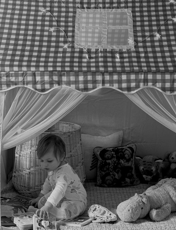 There are still lingering coughs and stuffy noses at our holiday house. After the beautiful blur of family Thanksgiving, sickness swept through the cottage in force. The baby catching her very first cold, and upon confirmation at an urgent care visit, her first double ear infection. I was also very sick with a sore throat and congestion, and would lay by the fireplace, doing my best to survive, as I watched Eden play with her books. I put on countless Christmas movies to pass our days: Elf, The Snowman, The Family Stone. When the worst of it all had passed, there was about a week until Christmas.