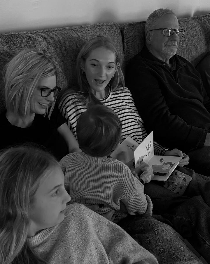 The pantry was cluttered, the fridge was a mess, and there were piles of muddy shoes on each floor. At one point, we stacked leftovers into the freezing mudroom and stuck coolers of drinks outside in the snowbanks. The baby squealed in delight at each of her cousins stopping by her highchair every morning, her little hands reaching and reaching for those family faces. Our home was full of bright.