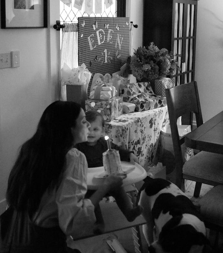 I woke up with her in the morning when the sky was still dark and pressed my face into hers, remembering the day I brought her into the world a year ago. Her face brightened immediately when I took her down our old wooden stairs, seeing all of the decorations that were set up just for her, our birthday girl.